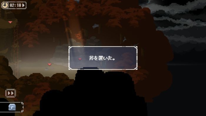泉には斧を持って入れないので、アイテムからきこりの斧を使って置いていきます。