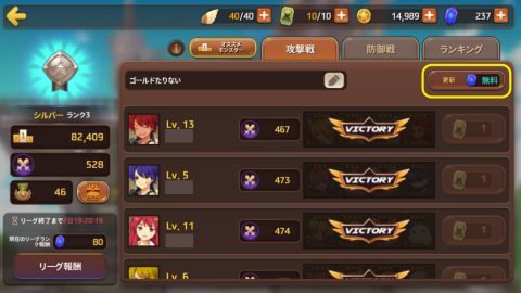 勝てそうな対戦相手がいなくなったら画面右上の更新ボタンで対戦相手を更新することが出来るので上手く活用しましょう。