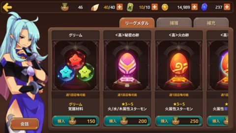 リーグメダルを貯めることでショップで「グリーム」や「卵」と交換することができます。