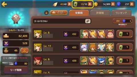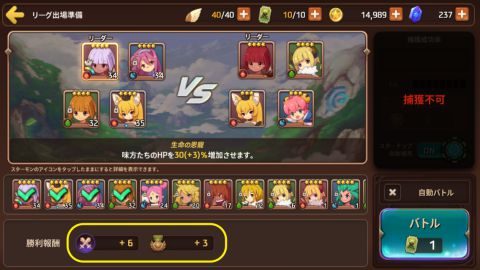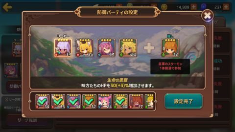 防御パーティが弱いままだと、相手に負けてリーグポイントを失ってしまうので、スターモンの育成状況に合わせて、こまめに編成しましょう。