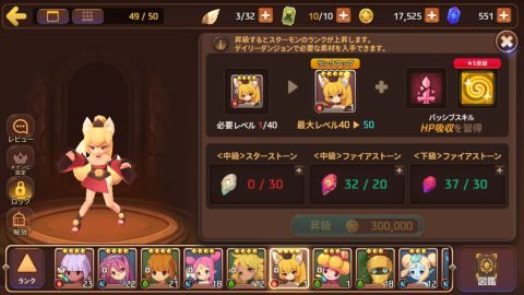 またスターストーンには下級、中級、上級と3段階が存在し、ランクの高いスターモンほどランクアップには上位の素材を要求します。