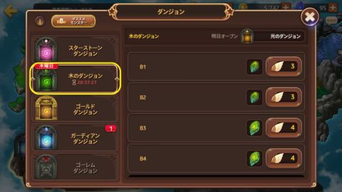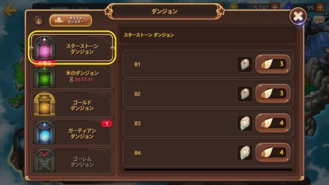 スターストーンダンジョン、曜日ダンジョンともに、B1からB10までの10階層となっており、各階層により入手できるスターストーンの種類や数が異なります。