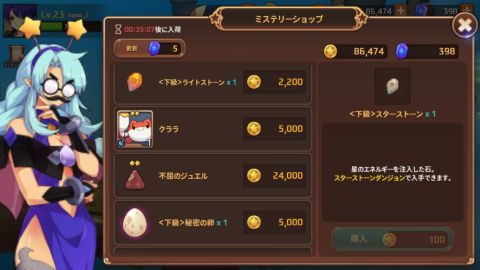 ホーム画面の「ミステリーショップ」は1時間に1回ラインナップが更新され、ソウルストーンが並ぶこともあります。