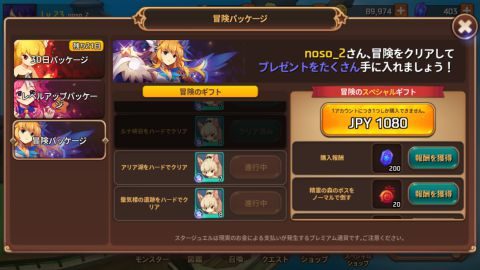 気づいていない人も結構多そうですが、ホーム画面右の「スペシャルパッケージ」の「冒険パッケージ」はエリアの難易度毎にクリアすることで「ミホ」のソウルストーンがもらえます。