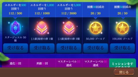 スタージュエルをもらえるミッションは↓の通りです。