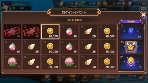 ▲7日目のログインイベントでスタージュエルがもらえる!