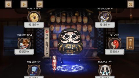 報酬の中には貴重な「御行ダルマ」(黒ダルマ)やSR式神「姑獲鳥」もあります!
