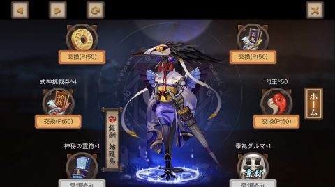 ▲2段階目のコンプリート報酬はSR式神「姑獲鳥」