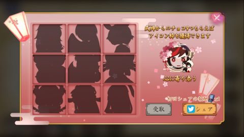 ▲9つの式神チョコを集めればアイコン枠がもらえます。