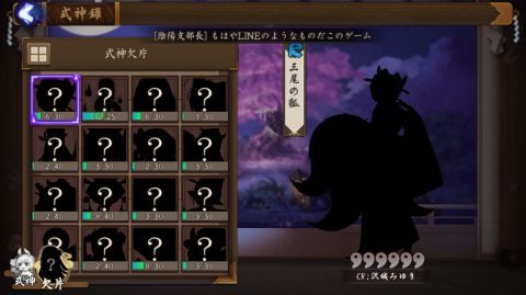 | 天狐神火 (パッシブスキル) | 1 | 神楽が攻撃を受けると、12%の確率で白蔵主の反撃を誘発する。白蔵主は天狐神火を発動して敵全体に神楽の攻撃力の100%相当のダメージを与える。 |