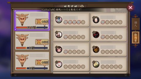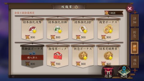 陰陽客では個人戦と違い、相手の陰陽寮の結界の90%を破ることで、陰陽寮勲章がもらえます。