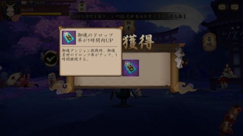 ▲御守りをうけとったら1時間御魂のドロップ率が上がります。