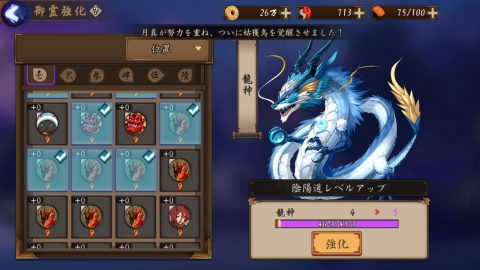 ▲御魂を素材に御霊を強化して陰陽道レベルを上げることが出来ます。