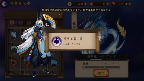 陰陽道レベルを上げると陰陽師のステータスが上昇します。