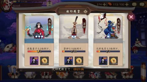 封印懸賞は指定された式神を指定数倒すことで報酬としてランダムで式神の欠片をもらえます。