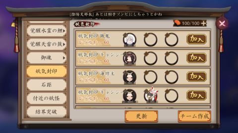 ▲マルチから自分の欲しい式神の妖気封印に挑みましょう。