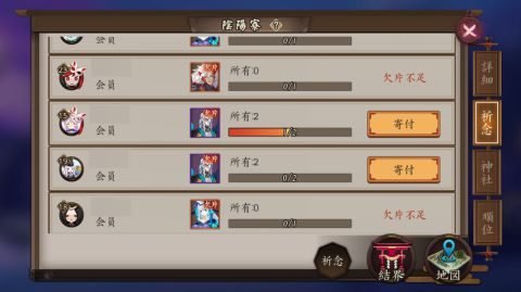 陰陽寮では1日1回、自分の所持する式神、式神の欠片のメンバーから寄付を求めることが出来ます。