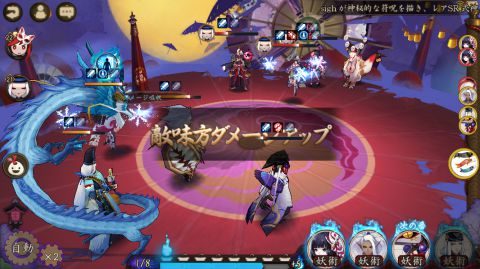 1段は陰陽師1、式神3の4体4ですが、2段以降は陰陽師1、式神5の6体6で戦います。
