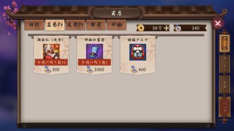 | SSR式神「両面仏」の欠片 | 200 | 1週間に10回 |