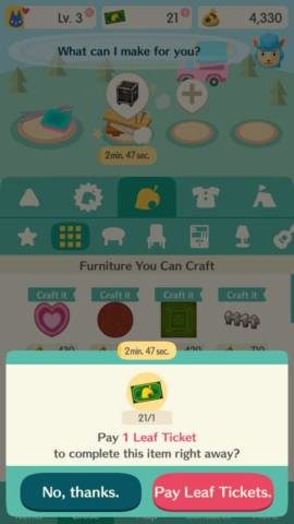 スマホアプリ「どうぶつの森ポケットキャンプ」(ポケ森)の課金要素であるリーフチケットの使い道を紹介します。