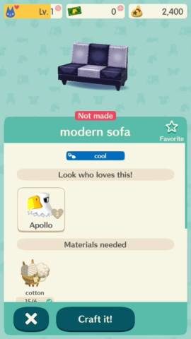 家具の製作には時間がかかり、リーフチケット(課金アイテム)で短縮することができます。