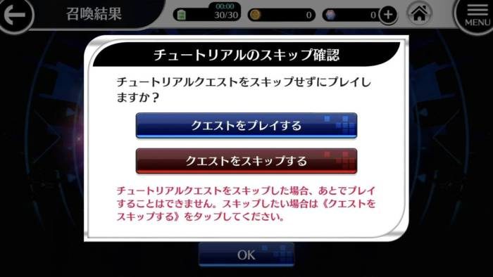 スキップすると二度とプレイできませんが、報酬面での損はないので、リセマラは2周以降はスキップでOKです。