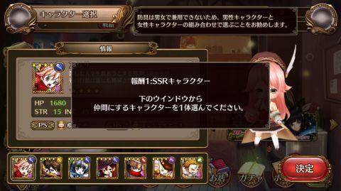 SSRとSRからそれぞれ一人ずつ好きなキャラクターを選択してもらえます。