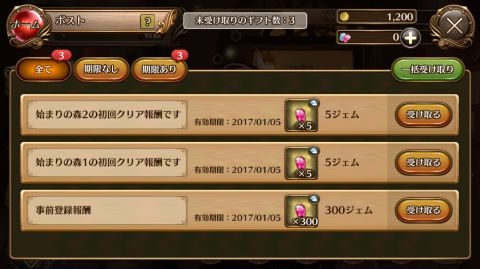 ダンジョンからチュートリアル用の「始まりの森」ステージ1とステージ2をクリアします。