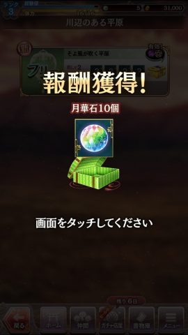 4/21時点ではチュートリアル終了時点で手に入る月華石ではガチャを引くのに10個足りませんでした。