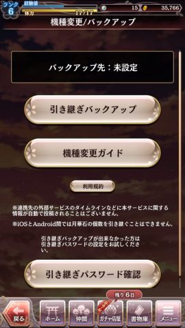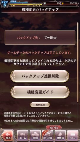 引継バックアップをSNS連携でするとガチャチケットがもらえます。