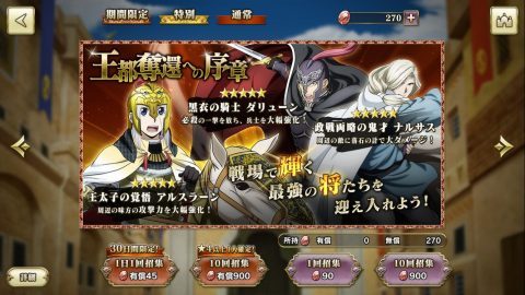 「アルスラーン戦記」のリセマラでは招集(ガチャ)から星5将兵を狙います。