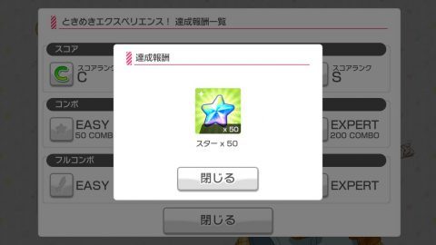 チュートリアルの「ときめきエクスペリエンス」はHARDかEXPARTでフルコンボするとスターを50個もらえます!