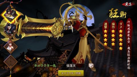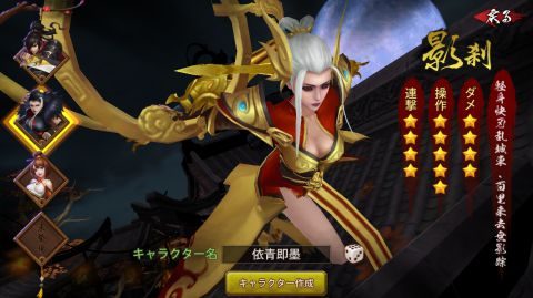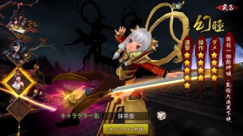 「幻瞳」、「影刹」、「狂斬」の3人からキャラクターを一人選択し、キャラクター名(重複不可)を入力します。