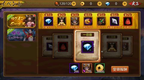 ホーム画面上の「イベント」でログインボーナスのダイヤを回収します。