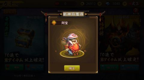 ▲ガチャの結果は紫(レア4)の「阿宝」です。