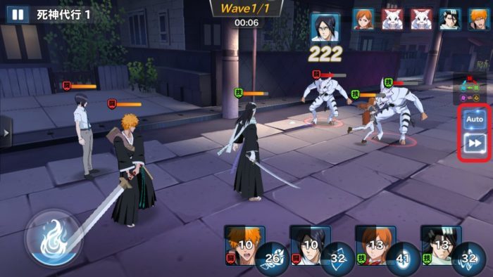 - 編成 / レベルアップ / 斬魄刀の強化 / 昇級 / 戦術技装着