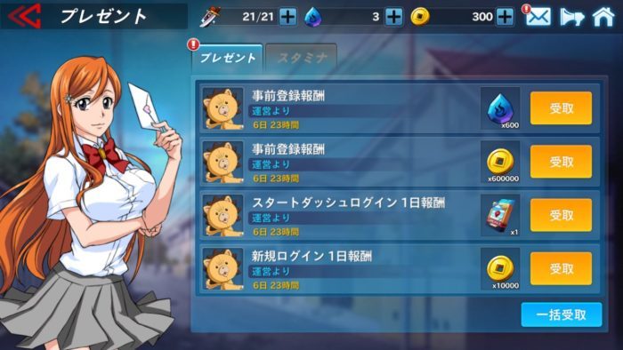 ログインボーナスを受け取った後は画面右上のプレゼント(メールアイコン)から事前登録報酬の霊魂水晶を受け取ります。