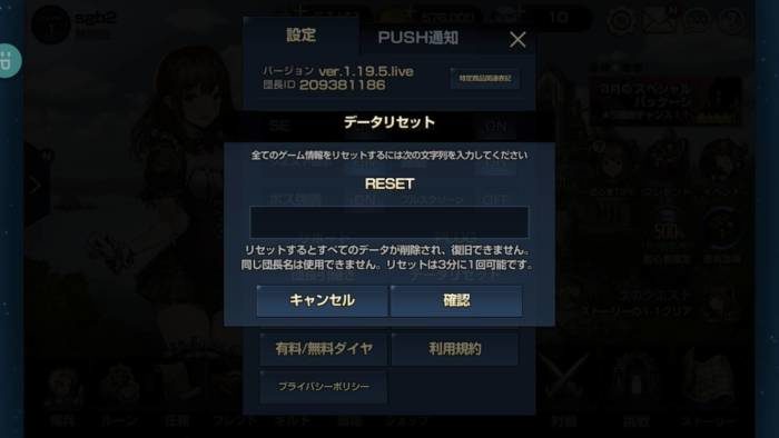 データのリセットは少し特殊で、アプリの機能として実装されています。2周目以降はデータダウンロードがないため、高速周回が可能です。