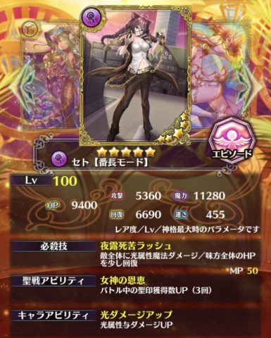 結果はランダムで手元では星4女神のみ確認していますが、コメントから「セト【番長】」の出現報告をもらっているので、運が良ければチュートリアルガチャでも星5女神が出現するようです。