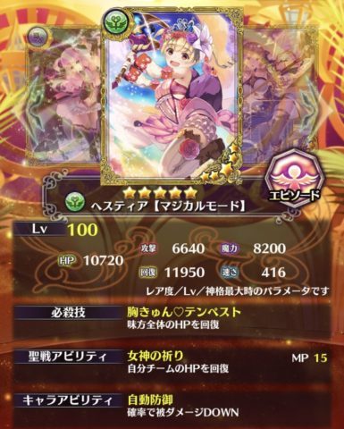 チュートリアルガチャでヘスティア【マジカルモード】出ました。