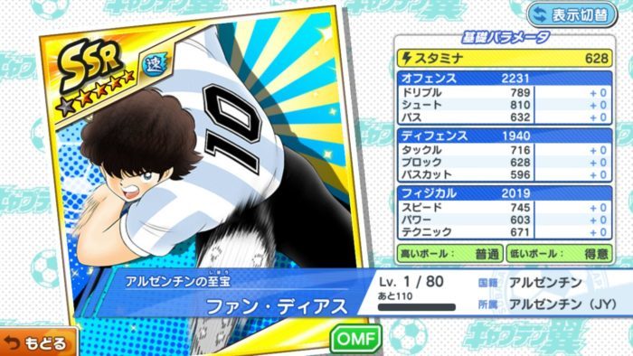 以下はリセマラ中に確認できた選手のスクリーンショットです。
