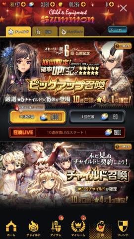 11/24時点でチャイルド召喚は以下の2種類が開催されていました。