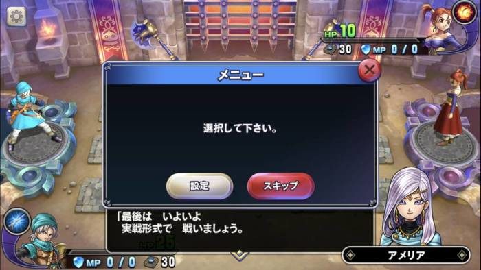 チュートリアルは全4戦ありますが、画面左上のメニューからスキップすることができます。