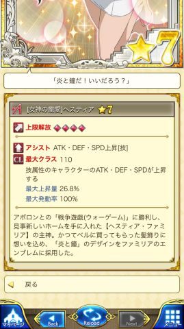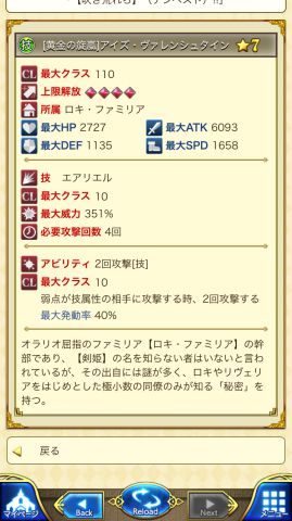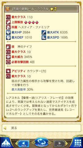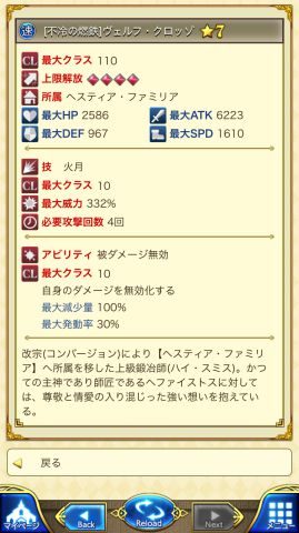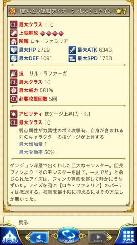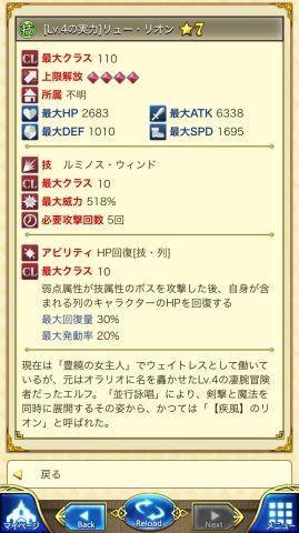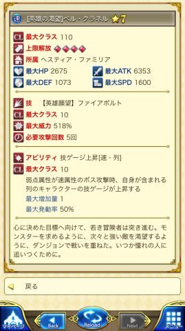 ガチャから出現する星7のキャラクターとそのステータス、スキルは↓のとおりです。