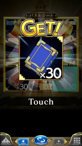 回すたびにパネルに応じた報酬とBINGOで「ピックアップキャラ確定星7出現率10%ガチャ券」がもらえますが、何回もリセマラしてBINGOパネルガチャをひいたところ、「戦術の書×30」がほとんどで、かなり偏りがあると思われるため過度の期待は禁物です!!