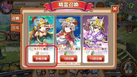 この時点で「友情カード」10枚で1回、合計4回の「友情召喚」を行うことができます。