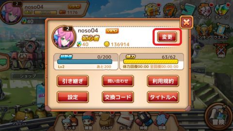 適当な名前でゲームを始めた場合は、リセマラが終わったら好きな名前に変えましょう。