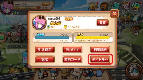 画面左上の名前のところをタップして、タイトルに戻り、データ削除を行いましょう。