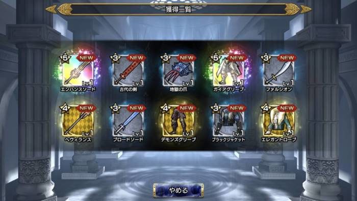 ガチャの結果はランダムで、星3以上の武器、防具、アビリティが手に入ります。