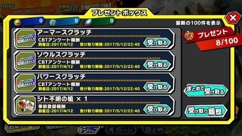 プレゼントから「CBTアンケート報酬」として以下のスクラッチチケットを受け取ります。
